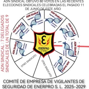 El pasado 11 de Junio la sección sindical de ADN SINDICAL SEGURIDAD Y SERVICIOS DE CATALUÑA de la empresa ENERPRO SEGURIDAD, arrolló al STS-C en las elecciones sindicales con una aplastante masa de votos.