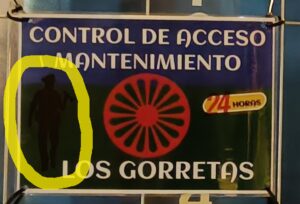 Se aprecia claramente, señalado con un círculo amarillo, la imagen de un vigilante de seguridad junto al símbolo “24h”, indicando vigilancia permanente. Una iconografía inequívoca que sugiere prestación de servicios de seguridad continuada.