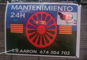 FOTOS 4: “SERVICIOS DE MANTENIMIENTO AUXILIAR LS” y 5: En esta la ampliación con el cartel de la rueda.