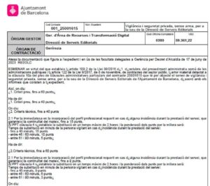 “Contracte de serveis de vigilància i seguretat privada, sense arma, per a la seu de la Direcció de Serveis Editorials de l’Ajuntament de Barcelona”