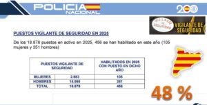Una interesante y aclaratoria ponencia en la que expuso diversos aspectos sobre el número actual de vigilantes en activo, de los/las habilitados durante el año 2024 y el primer semestre de este 2025, así como sobre los ratios de inscripción, presentación y superación de las diversas pruebas para la habilitación convocadas por la Policía Nacional durante el 2024.